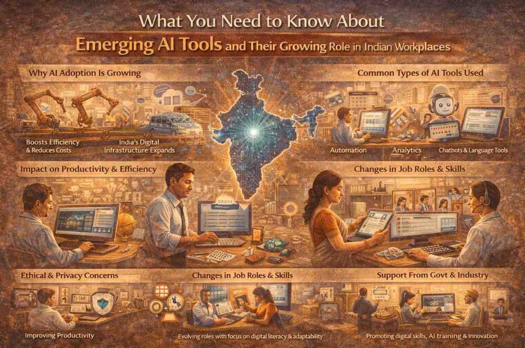 Artificial intelligence is no longer a futuristic concept in India’s workplaces. From corporate offices and factories to startups and public sector organisations, AI-powered tools are increasingly shaping how work is done, decisions are made, and productivity is measured. As businesses adapt to global competition and rapid technological change, understanding the role of emerging AI tools has become essential for employers and employees alike.